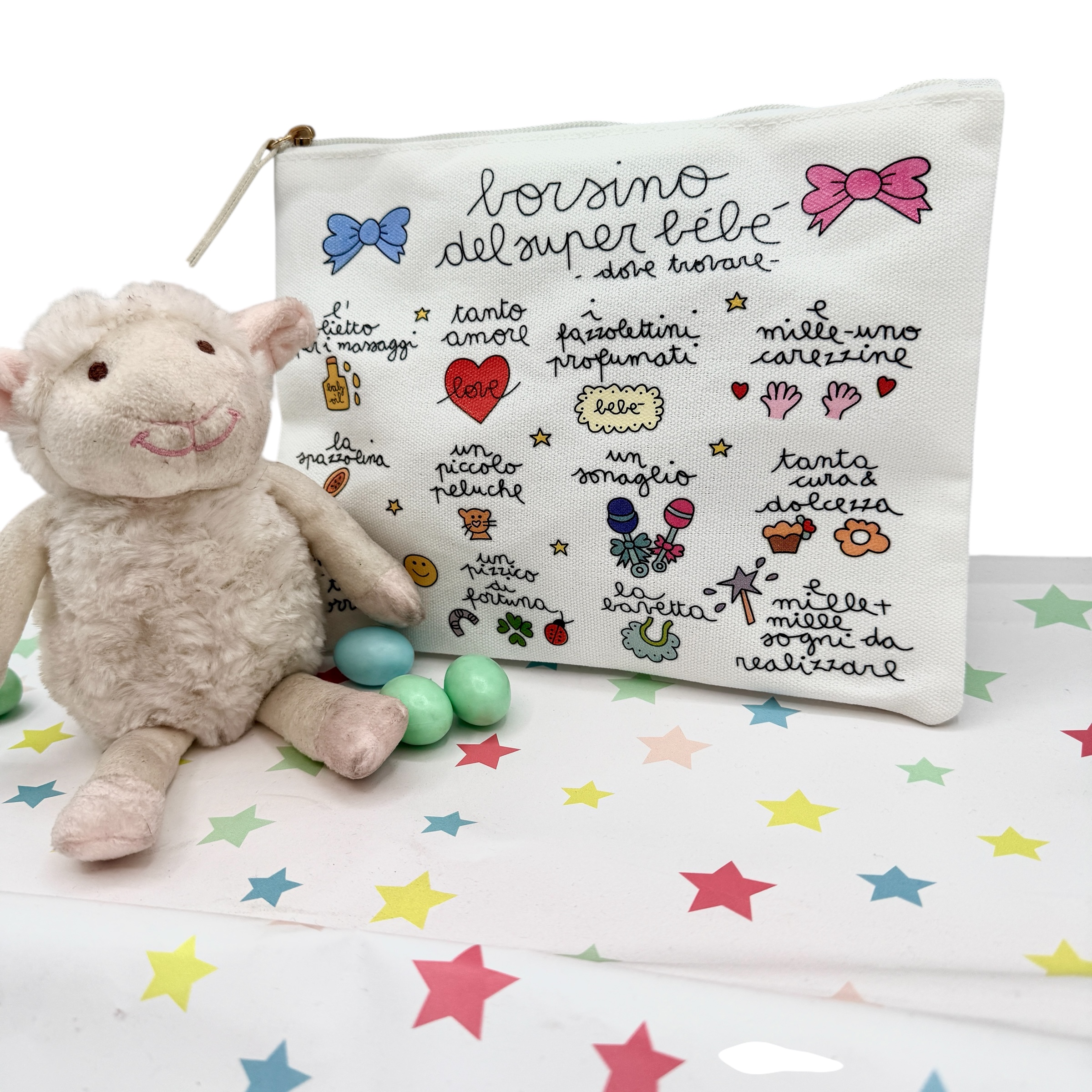 € 35,00 IVA inclusaBorsino in cavas dedicato ai bambini piccoli tenerissimo e dolcissimo. Ha i colori teneri dei bambini ed é unisex. la cosa bella è che é possibile personalizzarlo con il nome del bambino o bambina che lo riceve e di chi lo regala. busogna scriverlo nelle note quando si fa l’ordine.…